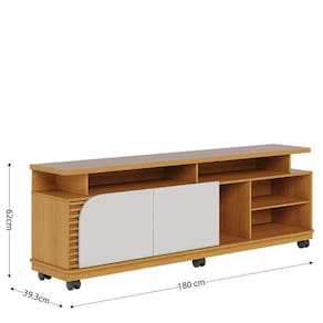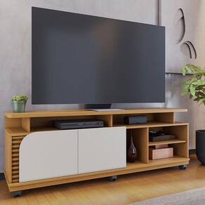 Apresentamos o Rack Bancada da linha Jurerê fabricado pela Colibri, sendo um móvel com um design contemporâneo, possui duas portas giro que garantem mais qualidade e fácil acesso ao seu interior, detalhe ripado na lateral dando um toque de elegância. Para facilitar a movimentação e limpeza vem equipado com rodízios proporcionando flexibilidade e praticidade para seu ambiente. Possui cinco nichos abertos e uma prateleira, amplo espaço para diversos itens desde eletrônicos até objetos decorativos. Produzido em MDP/MDF materiais que garantem resistência. Acomoda tvs até 75 polegadas. Faça a escolha ideal, deixe seu ambiente ainda mais lindo, estiloso, sem abrir mão da funcionalidade! Adquira já o seu!
