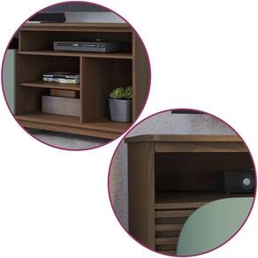 A Bancada Jurerê é uma peça contemporânea e elegante, destacando-se pelos apliques ripados decorativos e pela porta de quina assimétrica usinada. Seu tampo com detalhes suspensos adiciona sofisticação, enquanto o nicho espaçoso com duas portas oferece praticidade para aparelhos e decorações. Com amplo espaço para TVs de até 65 polegadas, a Bancada Jurerê é a escolha perfeita para transformar seu ambiente com estilo e funcionalidade.