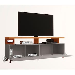 Com uma elegante prateleira, este móvel combina estilo e funcionalidade, proporcionando um espaço ideal para acomodar sua TV de tela plana e outros dispositivos eletrônicos.