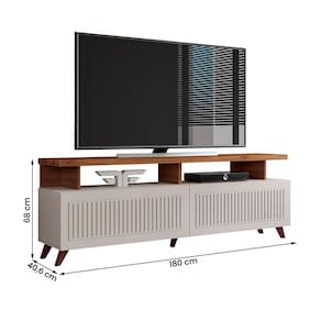 Com uma elegante prateleira, este móvel combina estilo e funcionalidade, proporcionando um espaço ideal para acomodar sua TV de tela plana e outros dispositivos eletrônicos.