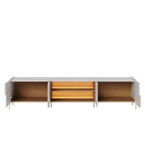 A bancada maggiore 240 cm combina design contemporâneo com uma elegância serena inspirada no lago maggiore, criando uma presença sofisticada e atemporal na sala. os módulos fechados com dobradiças em slow motion e puxadores curvos garantem suavidade e durabilidade, enquanto o nicho central iluminado em led realça texturas e dá profundidade ao ambiente. sustentada por pés metálicos em dourado palha, a peça une leveza à um charme refinado que transforma o espaço com harmonia e estilo duradouro.