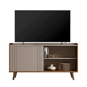 Possui porta de correr com trilho suave, nichos para objetos decorativos e estrutura em MDP/MDF resistente.