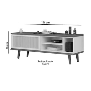 Quantidade de Portas - 1 Porta de Abrir Quantidade de nichos - 4 Nichos Ideal para TVs até (Polegadas) - 55 Tipo dos Pés - Pés em ABS/PVC Quantidade de Pés - Móvel possui 4 pés
