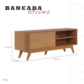 Chegou o toque de modernidade que faltava na sua sala. O Rack Bancada Otawa combina tecnologia avançada e funcionalidade para transformar sua sala de estar, desenvolvido pela Colibri Moveis, possui tampo com detalhe chanfrado, detalhe frontal em ripado artesanal, 01 porta deslizante, pés em madeira maciça, suporta TV de ate 65 polegadas. Feito com materiais de alta qualidade que irão garantir resistência e durabilidade ao produto. Confira mais detalhes e aproveite!