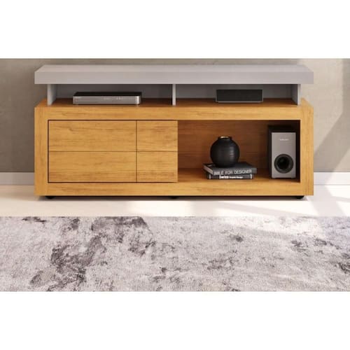 Rack Bancada p/ TV até 50 Pol Verano c/ 1 Porta e Rodízios 136cm Bali/Cedro - DJ Móveis