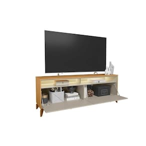 Tipo de Porta - Portas Basculante Quantidade de Portas - 2 Portas de Abrir Tipo de Iluminação - Iluminação Fita LED Quantidade de nichos - 2 Nichos Ideal para TVs até (Polegadas) - 70 Tipo dos Pés - Pés de Madeira Quantidade de Pés - Móvel possui 4 pés