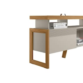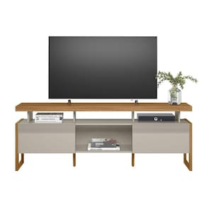 Rack Bancada p/ TV até 70 Pol Esmeralda c/ 2 Portas e 3 Nichos 180cm Nature/Off White - Linea Brasil