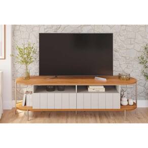 Rack Bancada P/ Tv Até 70 Pol Mônaco Ripado C/ 1 Porta E 1 Gaveta 204cm Cinamomo/off White - Permóbili