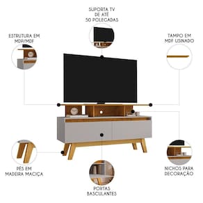 Rack Bancada Para 50 Pol 120cm Rubi 2 Portas Naturalle/Off - Bechara