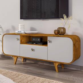 Os pés de madeira maciça garantem resistência e estabilidade, enquanto conferem um toque natural ao Rack Para . O acabamento refinado dos pés realça a elegância do design, completando a peça com um visual sofisticado.