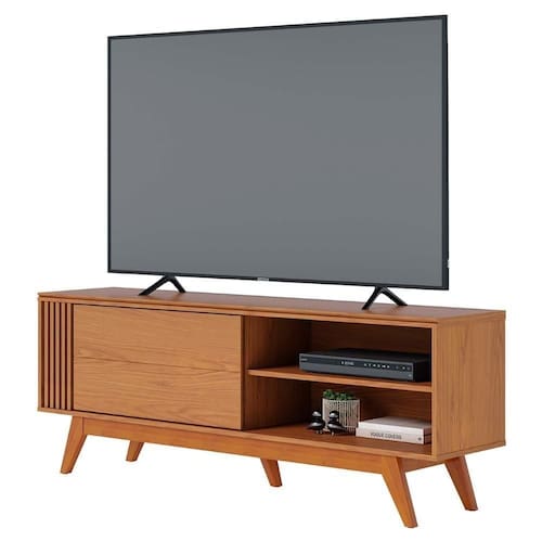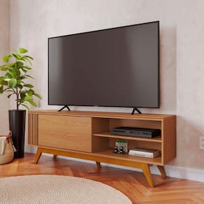 O Rack Para foi pensado nos mínimos detalhes para realçar seu ambiente. O tampo com borda chanfrada agrega sofisticação, enquanto o ripado artesanal se destaca, criando uma peça única que se adapta a diversas decorações. Os pés em madeira maciça trazem robustez e imponência, complementando o visual do móvel.