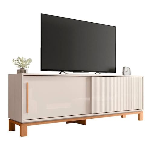 Rack Bancada Para 65 Pol 180cm Lucca Off White/Freijó C01 - MpozenatoA Bancada para de até 65 polegadas é uma escolha incrível para quem deseja aliar Design Sofisticado e funcionalidade em sua Sala De Estar, ela traz um estilo robusto com acabamentos em cores naturais, proporcionando um ambiente repleto de elegância e requinte. Perfeita para quem busca um item que combine com diferentes estilos, elevando a estética de qualquer espaço. O Rack Bancada oferece o equilíbrio perfeito entre estilo e praticidade, possuindo duas portas deslizantes. Uma das portas conta com o acabamento microripado, dispensando o uso de puxador, trazendo um toque moderno e clean, enquanto a outra possui puxador em ABS. O espaço interno com prateleiras internas que oferecem espaço para armazenar itens diversos de forma eficiente. Essa Bancada é ideal para espaços maiores, graças ao seu design que oferece nichos exclusivos para acomodar objetos de decoração e garantir a exposição de peças que dão um toque personalizado ao ambiente. Além disso, ela possui espaço dedicado para acomodar eletroeletrônicos e outros dispositivos, garantindo que fique não só bonito, mas também funcional. Se você busca beleza, praticidade e sofisticação, adicione a Bancada para em seu carrinho de compras e transforme sua sala de estar em um ambiente mais elegante e organizado. ESPECIFICAÇÕES Dimensões do ProdutoLargura: 180 cm. Altura: 61,9 cm. Profundidade: 37,9 cm. Peso: 39,3 Kg. Características do ProdutoMaterial da Estrutura: MDP 15mm. Peso Suportado: 30 kg Distribuídos. Acabamento: Pintura UV. Escala de Brilho: Brilho/Fosco. Suporta de até: 65 Polegadas. Possui Prateleiras: Sim. Quantidade de Prateleiras: 2 Prateleiras. Possui Portas: Sim. Quantidade de Portas: 2 Portas. Tipo de Porta: Deslizantes. Possui Gavetas: Não. Possui Puxador: Sim. Material do Puxador: ABS. Possui Nicho: Não. Possui Pés: Sim. Material dos Pés: Madeira. Diferenciais:- Design moderno.- Puxador na cor dos pés, em ABS.- Porta com detalhe microripado.Sistema de Montagem: Cavilhas/Parafusos/Minifix. Manual de Montagem: Sim. Complexidade da Montagem: Média. Volumes: 1 Volume. Conteúdo da Embalagem: 1 Rack. do Fabricante: 90 dias contra de fabricação. Montagem: Recomendamos que seja feita por um . Recomendação de Limpeza: Utilize pano levemente úmido. Observações importantes:- Produto para uso residencial em ambiente interno, não devendo ficar exposto diretamente ao sol, calor e umidades excessivas.- Pode haver alguma diferença de tonalidade entre a imagem e o produto real, por conta do tratamento de imagens e a calibração de cores do seu monitor.- As imagens são meramente ilustrativas, não acompanham objetos de decoração e eletrônicos.- Ao receber a mercadoria, o cliente deve verificar as condições da embalagem, caso haja algum não assine o de .- Montagem, desmontagem e outras instalações serão de responsabilidade do cliente. Não nos responsabilizamos, no ato da , por subir escadas/elevadores ou pelo por guincho em apartamentos. Eventuais despesas são de responsabilidade do comprador.- Confira as dimensões do produto e certifique-se de que passará normalmente por supostos elevadores, portas, escadas e/ou corredores de sua residência.