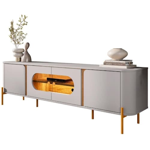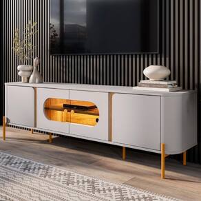 Com espaço interno amplo e uma prateleira fixa, o Rack oferece excelente espaço para a organização de eletrônicos, objetos decorativos e outros itens. A portas com dobradiças soft close garantem um fechamento suave e silencioso, proporcionando maior conforto e praticidade no dia a dia.