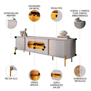 Um dos principais destaques Rack Para é a dupla iluminação em LED, que proporciona um efeito visual elegante e moderno, juntamente com os vidros reflecta, dá um toque a mais de sofisticação, criando uma atmosfera única e iluminada valorizando sua Sala de Estar.