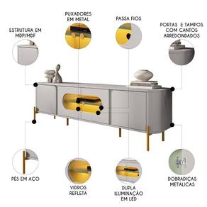 Um dos principais destaques Rack Para é a dupla iluminação em LED, que proporciona um efeito visual elegante e moderno, juntamente com os vidros reflecta, dá um toque a mais de sofisticação, criando uma atmosfera única e iluminada valorizando sua Sala de Estar.