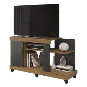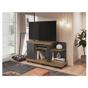 Rack Bancada para Sala Ambiente Canadá Freijó Grafite Perolizado - Móveis Leão