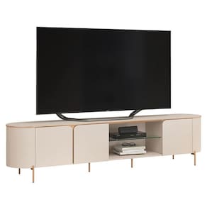 Está montado a sua sala? Apresentamos para você este belo rack da linha Ariana. Apresenta bordas arredondadas e três portas com cantos curvos, dando um visual moderno e suave. Possuindo uma prateleira em vidro para acomodar seus aparelhos eletrônicos, além dos pés em metal na cor dourado, garantindo charme e resistência. Fabricado pela DJ Móveis, é desenvolvido em 100% MDF proveniente de madeira de reflorestamento. Com capacidade para TVs de até 75 polegadas, será a escolha perfeita para compor seu ambiente com mais sofisticação e organização. Confira e aproveite!