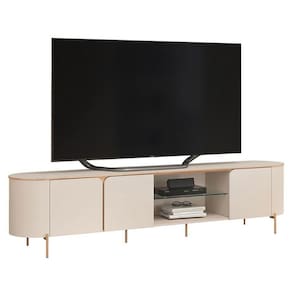 Está montado a sua sala? Apresentamos para você este belo rack da linha Ariana. Apresenta bordas arredondadas e três portas com cantos curvos, dando um visual moderno e suave. Possuindo uma prateleira em vidro para acomodar seus aparelhos eletrônicos, além dos pés em metal na cor dourado, garantindo charme e resistência. Fabricado pela DJ Móveis, é desenvolvido em 100% MDF proveniente de madeira de reflorestamento. Com capacidade para TVs de até 75 polegadas, será a escolha perfeita para compor seu ambiente com mais sofisticação e organização. Confira e aproveite!