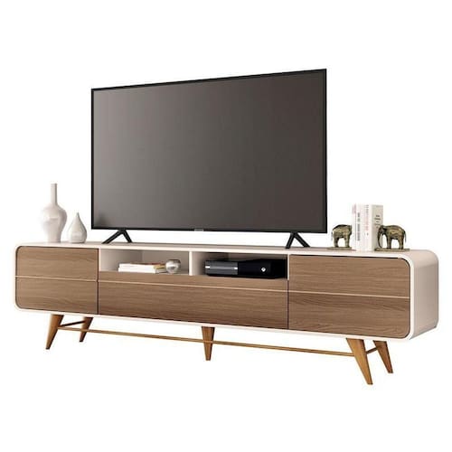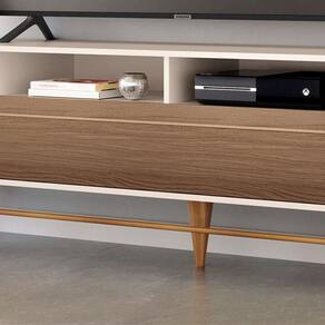 Rack Bancada para Sala Época Off White Castanho HB Móveis