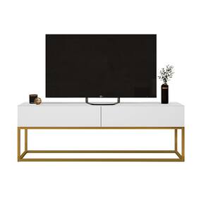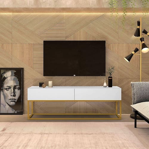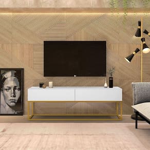 Rack Bancada Para Sala Tv Ate 50 Polegadas Branco/Dourado