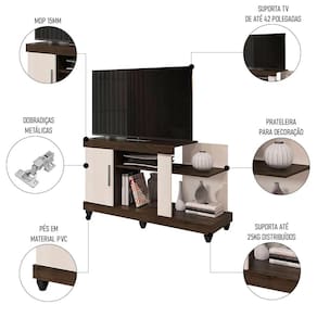 Com design compacto, esse rack para sala conta ótima repartição entre porta, prateleira e nichos, ou seja, possui espaço para acomodar aparelhos eletrônicos e objetos decorativos, além de ser ideal para apoiar TVs de até 42 polegadas. Além disso, esse rack para tv se destaca pela versatilidade, já que harmoniza com qualquer estilo de decoração, sem falar que se adequa facilmente em sala de estar pequena, sem comprometer a funcionalidade.