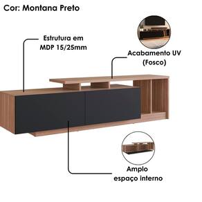 Rack Bancada B91, moderno e sofisticado, ideal para quem busca aliar design e qualidade com muito estilo. Composto por Estrutura MDP de 15 mm, tampo em MDP de 25 mm e acabamento UV fosco. Composta por amplas portas basculantes com limitador de abertura, nichos internos e externos para armazenamento e um tampo amplo e funcional, perfeito para acomodar objetos decorativos (suportando TVs de até 50 polegadas). NÃO ACOMPANHA TV NEM DEMAIS DECORAÇÕES. Este produto será entregue em 1 volume.