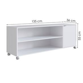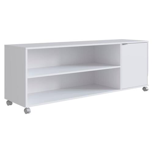 O Rack Bancada B57 combina elegância e funcionalidade, sendo a escolha ideal para complementar sua sala de estar! Estrutura em MDP de 15 mm (fundo 3 mm) com acabamento em verniz (fosco). Suporta até 25 kg (10kg no tampo e 5kg por nicho), comporta TVs de até 55 polegadas com segurança, composto por porta única com puxador e dobradiça metálica, e acompanha 4 rodízios plásticos. ELETRÔNICOS OBJETOS DECORATIVOS NÃO INCLUSOS. Este produto será entregue em 1 volume.