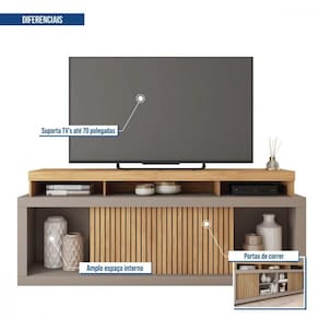 decoracao da sala de estar, possui 1,8 m de largura, acomoda televisores de ate 70 polegadas, proporcionando uma experiencia