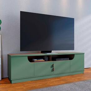 O Rack Para TV conta com duas portas com elegantes puxadores de alumínio e duas portas passantes com detalhe curvo, oferecendo um toque de requinte ao seu ambiente. Elas são equipadas com dobradiças metálicas que promovem uma abertura suave. Além disso, o Rack possui dois nichos espaçosos para acomodar seus aparelhos eletrônicos, exibir objetos decorativos ou até mesmo guardar livros e itens pessoais de forma organizada.