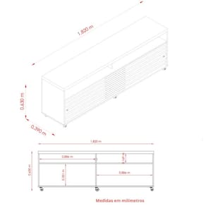 Dimensões: Altura: 63 cm Largura: 182 cm Profundidade: 39 cm Peso: 37,10 kg