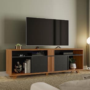 O Rack Bancada NT 1320 moderna e espaçosa vai dar aquele diferencial em seu ambiente. Conta com detalhes ripados, espaço para eletrônicos e pés de madeira maciça agregando elegância e durabilidade ao produto, além de possuir duas portas com dobradiças slow motion proporcionando um fechamento mais suave. Um móvel ideal para quem busca sofisticação.