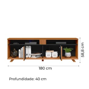 MARCA : Notável COR : Freijó Preto ALTURA: 58,8 cm LARGURA: 180 cm PROFUNDIDADE : 40 cm PESO: 39,74 kg MATERIAL DA ESTRUTURA :MDP/MDF ESPESSURA DO MATERIAL DA ESTRUTURA: 15 e 25 mm TIPO DE PINTURA : UV ACABAMENTO: Brilho TIPO DE PORTA: Articulada NÚMERO DE PORTAS: 2 MATERIAL DO PUXADOR: MDF DOBRADIÇA: Slow Motion MATERIAL DOS PÉS: Madeira Maciça NÚMERO DE PÉS: 5 ALTURA DO PÉ : 6,5 cm NÚMERO DE PRATELEIRAS: 1 PESO MÁXIMO SUPORTADO PELAS PRATELEIRAS: 15 kg IDEAL PARA TVDE ATÉ : 70 Polegadas PESO MÁXIMO SUPORTADO :55 kg