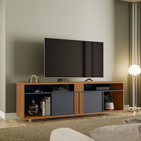 O Rack Bancada NT 1320 moderna e espaçosa vai dar aquele diferencial em seu ambiente. Conta com detalhes ripados, espaço para eletrônicos e pés de madeira maciça agregando elegância e durabilidade ao produto, além de possuir duas portas com dobradiças slow motion proporcionando um fechamento mais suave. Um móvel ideal para quem busca sofisticação.