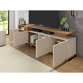 Ele suporta Tvs de até 75 polegadas sobre sua bancada de 25mm, conta ainda com 4 portas com dobradiças metálicas, e 2 nichos e Sistema de Rodízios! Clica em comprar e leve agora mesmo!
