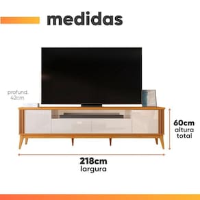 Importante sobre a entrega: A entrega é realizada até a portaria ou porta de entrada do endereço indicado, desde que o acesso seja permitido. Para locais com portaria, a entrega será feita no piso térreo. Não realizamos montagem, desmontagem, transporte por escadas ou içamento. É responsabilidade do cliente verificar se as dimensões do produto são compatíveis com portas, elevadores e corredores. Evite imprevistos: confira todos os detalhes antes de concluir sua compra. MEDIDAS:: A = 60 cm L = 218 cm P = 42 cm | MEDIDAS NICHO:: A = 18 cm L = 121,4 cm | MEDIDA PÉS:: A = 20 cm | NICHO SUPORTA ATÉ:: 4 kg | GAVETAS SUPORTAM ATÉ:: 4 kg | PRODUTO SUPORTA ATÉ:: 30 kg | PESO:: 42 kg | IDEAL PARA TV DE ATÉ:: 75 Polegadas | MODELO:: Rack Bancada Para TV Até 75 Polegadas 2,18m 2 Portas Detalhe Ripado Vetro | COR:: Madeirado/Off White | MARCA:: EDN Móveis | PINTURA:: UV de alta qualidade | ACABAMENTO:: Semi brilho | MATERIAL DA ESTRUTURA:: MDP/MDF | ESPESSURA DA ESTRATURA:: 25 mm | GAVETAS:: 2 | CORREDIÇAS:: Telescópicas | PORTAS:: 2 | TIPO DE PORTA:: Bater | DOBRADIÇAS:: Pressão | PUXADORES:: Cava | NICHOS:: 1 | PÉS:: 6 | MATERIAL DOS PÉS:: Madeira Maciça | DIFERENCIAIS:: Design moderno e elegante / Pintura UV de alta qualidade / 2 Gavetas com corrediças telescópicas / Nicho para maior armazenamento / Pés em madeira maciça / Suporta TV de até 75. | ITENS INCLUSOS:: 1 rack, 1 manual de montagem, 1 kit parafusos | INSTRUÇÕES E CUIDADOS:: Para maior durabilidade, recomendável que a limpeza dos móveis seja feita com pano limpo e seco. Não usar produtos químicos ou abrasivos. | GARANTIA:: 3 meses pelo fabricante. | AVISO:: Importante sobre a entrega: A entrega é realizada até a portaria ou porta de entrada do endereço indicado, desde que o acesso seja permitido. Para locais com portaria, a entrega será feita no piso térreo. | Altura: 60 cm | Largura: 218 cm | Profundidade: 42 cm | Inclui manual de montagem: Sim | Quantidade de caixas de embalagem: 2 | Requer montagem: Sim | Altura da embalagem: 20 cm | Comprimento da embalagem: 228 cm | Largura da embalagem: 46 cm | Peso da embalagem: 57300 g | Tipo da embalagem: sem embalagem adicional | Cor: Madeirado/Off White
