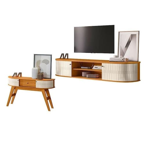 Começou a mobiliar sua sala de estar? Então apresentamos para você este belo conjunto composto pelo Rack Bancada Suspensa da linha Algarve e o Aparador da linha Estoril, sofisticado conjunto que combina funcionalidade e estilo. O rack possui duas portas íveis permitindo que organize da melhor forma possível. Além disso, conta com uma prateleira oferecendo espaço para colocar aparelhos eletrônicos ou itens decorativos. Completando o conjunto, o aparador é equipado com duas portas íveis proporciona fácil acesso ao seu amplo espaço interno, enquanto a gaveta oferece um espaço adicional para você guardar seus acessórios. Fabricado pela Madetec, são feitos em MDP com materiais de alta qualidade, garantindo mais durabilidade. Se você está procurando móveis com design moderno, praticidade e qualidade será a escolha perfeita para deixar seu ambiente elegante e funcional. Confira e garanta o seu!
