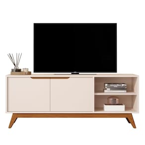 Ideal para TVs de até 60, conta com 2 portas com dobradiças metálicas, nichos amplos e prateleira para organizar eletrônicos e objetos decorativos.