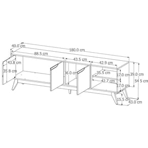 Dimensões: 180 cm(L) x 54,5 cm(A) x 43 cm(P);