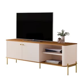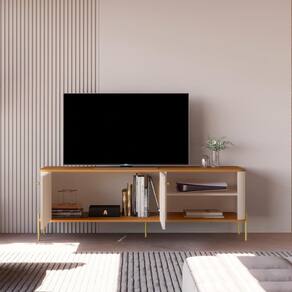 Rack Bancada Tucupí 140cm para TV até 60" com Pés de Metal - Off White | Nature