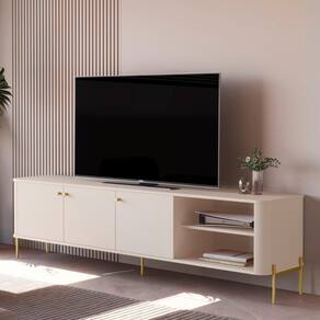 Com design moderno em MDF 15mm e pés de metal, suporta TVs de até 75.