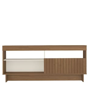 Rack Bancada a escolha ideal para quem busca praticidade, elegância e um toque contemporâneo à sala de estar. Composto em estrutura de MDF/MDP de 15mm, 2 nichos vazados e 2 fechados com amplo espaço, sendo um com 1 porta basculante com detalhes ripados em baixo relevo com abertura para baixo. Seu tampo suporta até 35 kg. O seu acabamento combina pintura UV texturizada e alto brilho que unem durabilidade, fácil limpeza e um toque moderno. Além disso foi feito para suportar TV de até 65" com segurança. Este móvel chegará em sua casa separado em 01 volume.