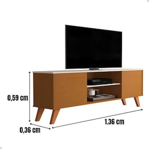 Rack Bancada TV Até 58 Polegadas Pés Madeira Portas Nichos Helena - Nature | Off White