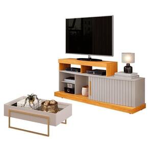 Está montando sua sala? Apresentamos para você este belo conjunto composto pelo rack da linha Valle e a mesa de centro da linha Petri. O rack com seu design curvo e porta deslizante com frisos valoriza e organiza o espaço com muita praticidade. Contando com cinco nichos, é perfeito para acomodar seus aparelhos eletrônicos ou objetos decorativos. Além disso, possui puxador em MDF. Para facilitar a limpeza, conta com rodízios ocultos, sem comprometer a estética. Compondo o conjunto, a mesa de centro apresenta espelho aplicado em seu tampo e suas laterais chanfradas entregam um acabamento refinado, enquanto seus pés em metal na cor dourado. Fabricados pela DJ Móveis, são desenvolvidos em MDP/ MDF de madeiras reconstituídas de reflorestamento, garantindo resistência e sustentabilidade. Com um toque de modernidade e luxo, este conjunto cria um ambiente aconchegante e sofisticado. Confira e aproveite!
