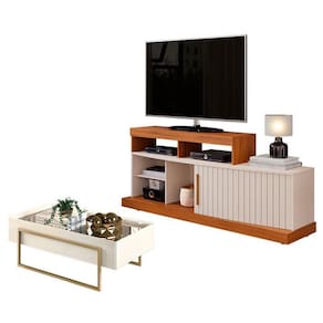 Rack Bancada Valle com Mesa de Centro Suri Freijó Off White DJ Móveis