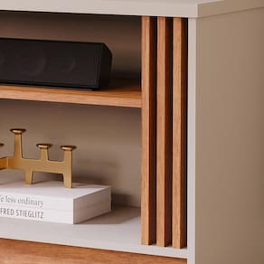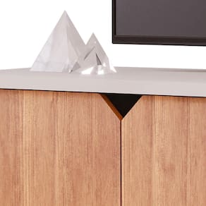ESPECIFICAÇÕES: Estrutura em MDF Pintura UV 2 Portas Dobradiças metálicas Detalhe ripado na lateral Prateleira Tampo de 25mm Ideal para TV até 55