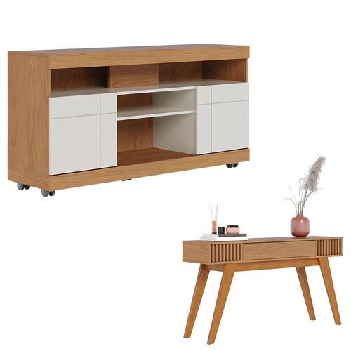 Rack Bancada Yara Freijó Off White com Aparador Riviera Freijó – Colibri