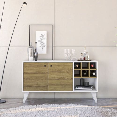 O rack bar Ibiza da Mademovel serve para armazenar vinhos, destilados, copos e coqueteleiras, criando um ponto de bar em sua casa. Dispõe de espaço para 6 garrafas deitadas. Além da sua utilidade como bar e armazenar utensílios diversos, ele traz elegância ao seu ambiente. Acabamento da Porta: Finish Foil Acabamento dos Pés: Liso Altura dos Pés: 17 cm Ambiente Principal: Sala de Estar Bandeja: Não Possui codigo_ean: 7900288284648 Complexidade da Montagem: Média: pode ser montado por mais de uma pessoa e/ou necessite de maior conhecimento para montagem Cor: Branco/Mel Cor do Produto: Branco/Mel Cor Flex: Não Cor Interna: Branco/Mel Escala de Brilho: Fosco Escala de Brilho da Porta: Fosco Itens Inclusos: 1 Bar, Kit Ferragens e Manual de Montagem Linha ou Coleção: Ibiza Manual de Montagem e Instalação: https://product-hub-prd.madeiramadeira.com.br/606760021/documents/72dd9efc-5dff-4477-b7d5-f0b5a97abbe53309166522517619457701664.pdf Marca: Mademovel Material da Porta: MDP Material dos Pés: PVC Material Principal: MDP Montagem Flex: Não Necessita Montagem: Sim Origem do Produto: Nacional Pés Reguláveis: Não Peso: 21,75 kg Porta Rolhas/Tampinhas: Não Porta Taças: Não Porta-garrafas: Não Possui Adega: Sim Possui Espelho: Não Possui Gavetas: Não Possui iluminação: Não Possui Pés: 04 Possui Portas: 02 Possui Prateleiras: Não Possui Rodízio: Não Possui Vidro: Não Quantidade de Garrafas da Adega: 06 Recomendações de Uso, Manutenção e Limpeza: Para a limpeza do móvel utilizar pano levemente umedecido com água e sabão neutro Sapatas Niveladoras: Não Sistema de Montagem: Parafusos e cavilhas Suporta Até (kg): 30 kg Tipo de Dobradiça/Corrediça da Porta: Metálica Tipo de Porta: Bater Tipo de Puxador da Porta: Embutido Marca: Não Informado