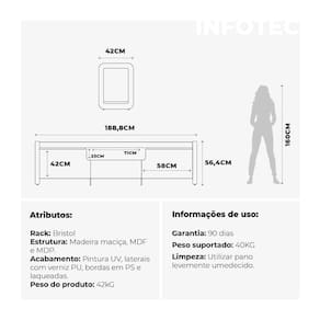 O Rack Bristol é a escolha ideal para quem busca sofisticação e praticidade. Feito em MDF e MDP, com laterais em madeira maciça Tauari, possui 2 portas com pistão a gás e 1 gaveta com corrediças telescópicas. Perfeito para salas modernas, suporta TVs de até 75 polegadas, sendo funcional e elegante.