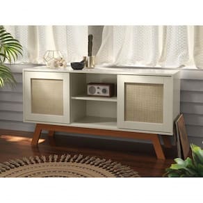 O Rack Buffet com duas portas de correr e detalhes em rattan é a solução ideal para quem busca praticidade e estilo. Seus pés em madeira conferem um toque natural, e as portas de correr facilitam o acesso ao conteúdo. Ele se encaixa bem em salas e áreas de convivência, oferecendo elegância e funcionalidade.