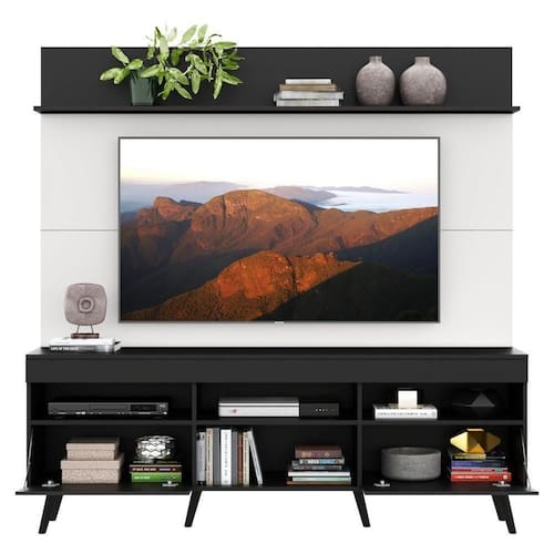 O Rack com Painel e Suporte TV 65" Madri Multimóveis Pés Retrô e Prateleira é produzido em MDP com acabamento acetinado, que garante maior durabilidade e facilidade na limpeza. Possui 4 nichos com espaço para os equipamentos eletrônicos e objetos decorativos, 2 portas articuladas com um amplo espaço interno para manter seus pertences organizados e os pés palito, estilo retrô, em polipropileno, que dão um charme especial ao móvel deixando-o com um visual leve e permitindo você compor um ambiente com ar vintage e moderno ao mesmo tempo. O painel para TV de até 65 (suporta até 30 kg) com espaçamento para passagem dos fios, que permite deixar os cabos mais organizados e o visual clean, ainda possui uma prateleira para os objetos decorativos. Para facilitar a sua vida, este produto acompanha também o kit para fixação da TV. Muito prático e de fácil instalação, pode ser utilizado para TVs LCD, LED e plasma de 14 a 71. Totalmente sobreposto, acompanha gabarito de montagem que auxilia na instalação. Conta com um sistema de encaixe rápido, possui 16mm de deslocamento que permite o ajuste do encaixe das peças. Uma ótima opção para deixar sua sala linda e confortável para curtir os melhores filmes e séries.